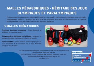 La Ligue de l’Enseignement de Normandie propose un projet de malles pédagogiques en lien avec une diversité d’activités et contenus autour de l’activité sportive sous tous ses angles (sports adapté, alimentation, lien à la santé…) à destinations des publics enfants de 6 à 17 ans afin de pouvoir promouvoir les valeurs portées par les activités sportives pour permettre de faire découvrir et de faire vivre auprès des publics des activités favorisant la pratique sportive, la découverte du monde et des pratiques sportives innovantes.